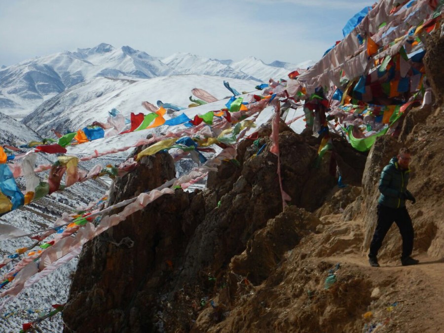 Lobby with prayer flags, Yushu, 3 Feb 15
