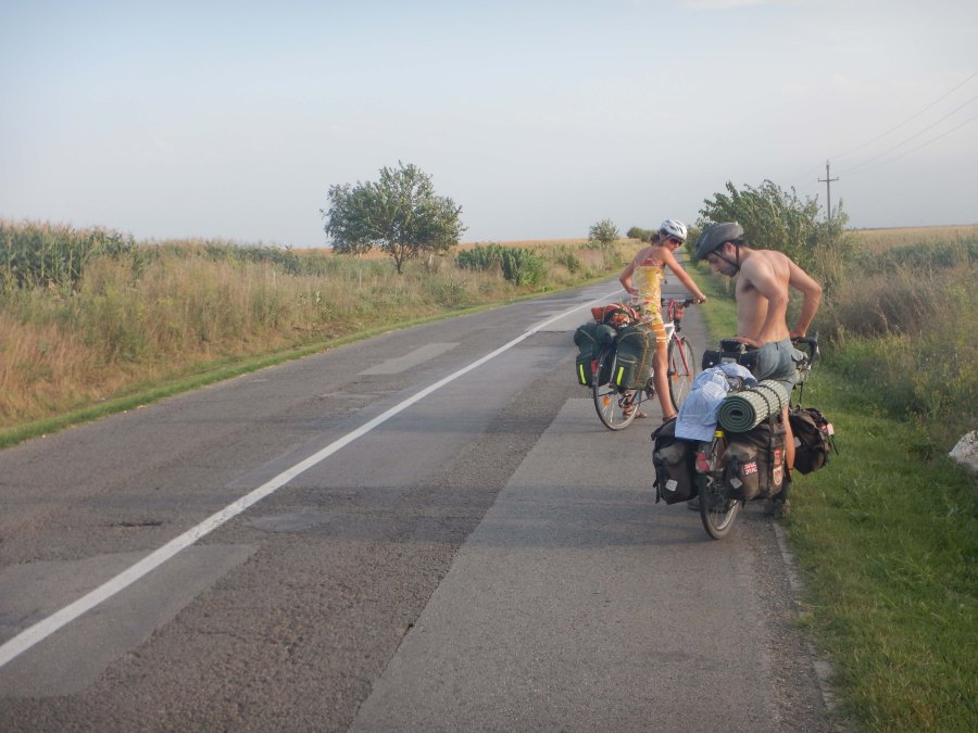 20140814 Jumping the barrier across the bridge in our entry to Belgrade