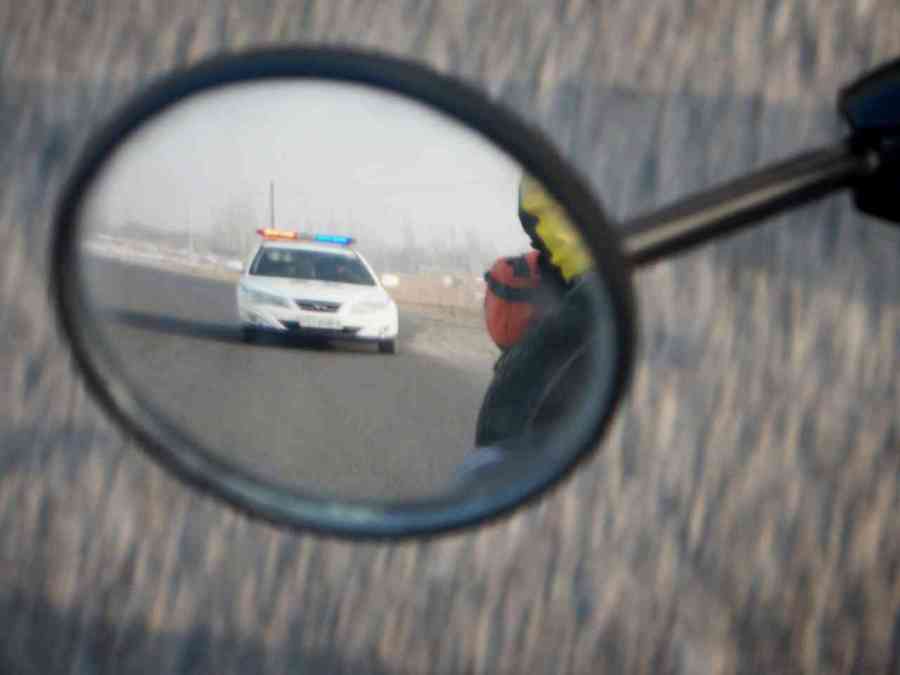 Police escort on the way to Luntai, 11 Jan 15
