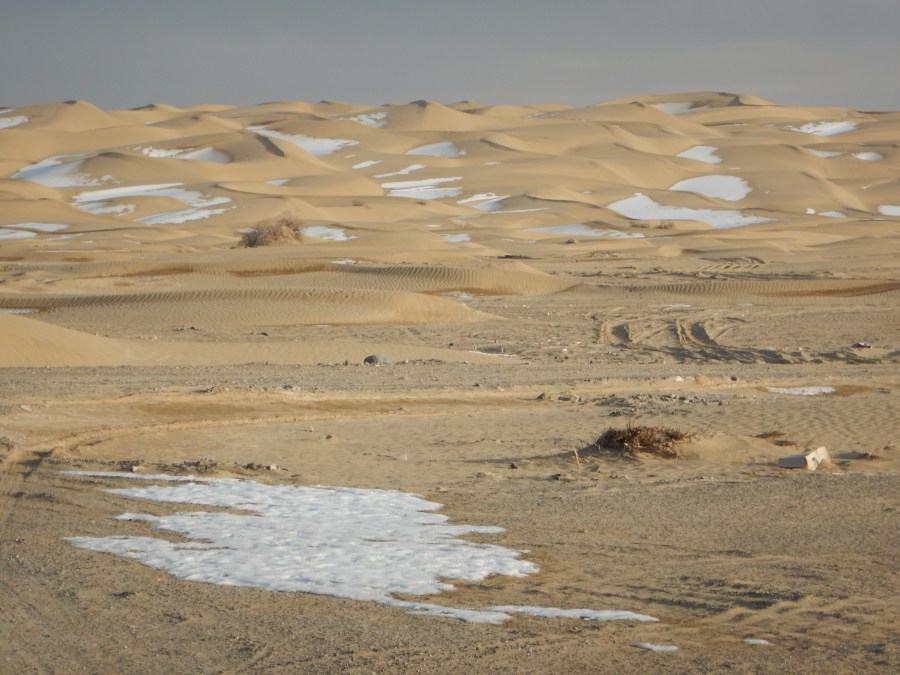 Scrubland turns into snowcapped dunes, 12 Jan 15