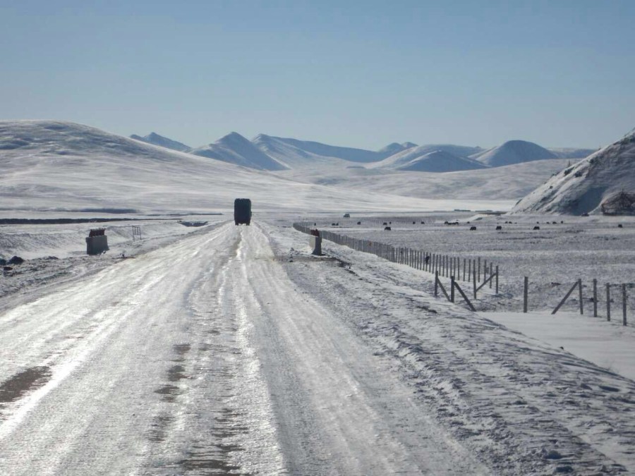 Icy road on the Tibetan plateau, Feb 2015