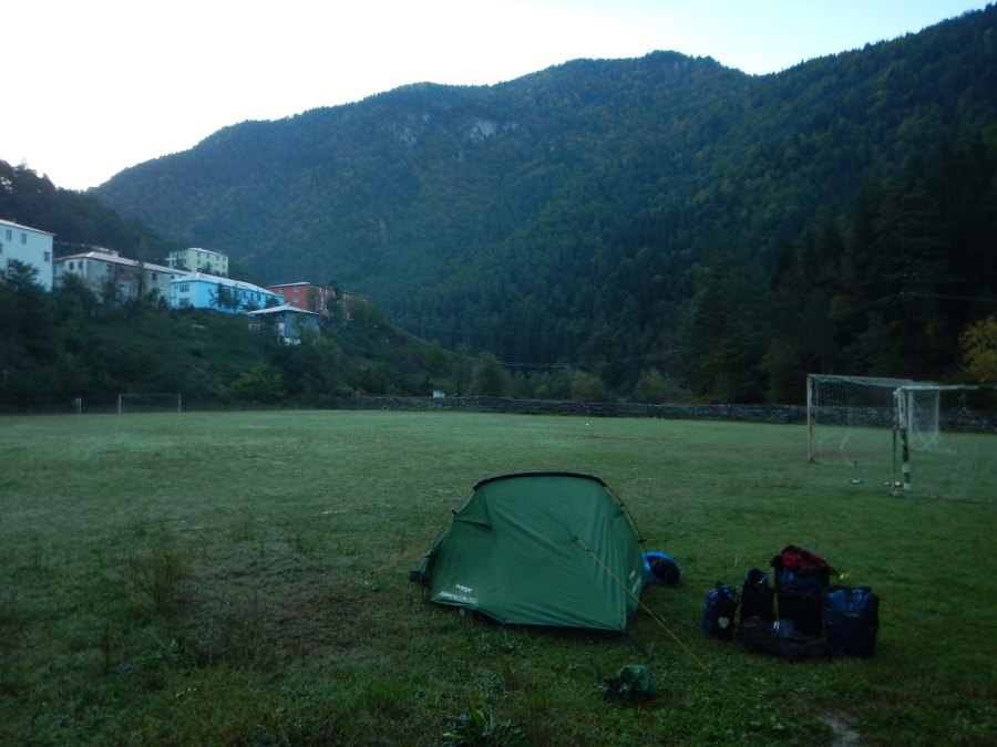 Camping on a very cold football pitch, reminiscent of Germany, 8 Oct 14