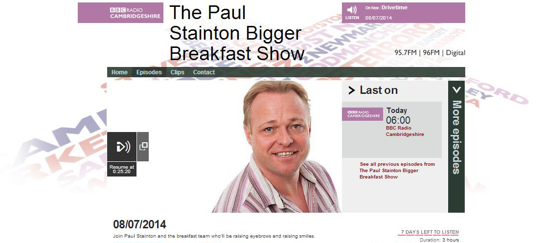 BBC Radio Cambridgeshire – Paul Stainton’s Bigger Breakfast Show.