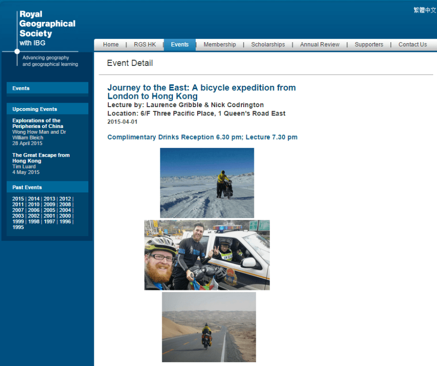 Royal Geographical Society, Hong Kong, 1 April 2015