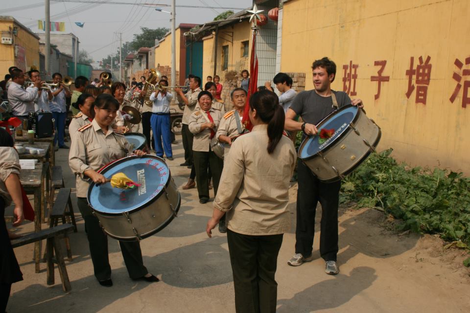 I have just finished four decent years at Fitzwilliam College studying Chinese and I spent last year in China with Laurence and Nick – yep, the three of us all did Chinese at uni together! – during which we embarked on a ten day bike trip across Henan and Hebei before hitting the smog of Beijing. It was a cracking experience, got to see a different side of China and even played a drum at what turned out to be a funeral (I only found this out after showing the pics to my anthropology lecturer back in Cam!! – see below).